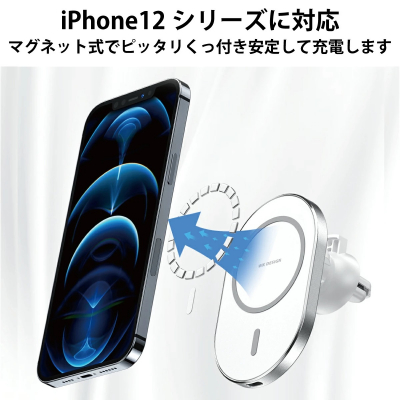 ミスターカード株式会社(本社所在地:埼玉県川口市)は、iPhone12シリーズ対応の「車載マグネット式ワイヤレス充電器」を2021年1月19日(火)に発売します。片手で置くだけで簡単に着脱できる強力な磁気吸着式。15W/10W/7.5W/5Wの急速充電。縦横どちらにも置けて、360回転の見やすい角度に調整できます。運転中に時間を無駄にせずスマホを充電できるエアコン吹き出し取り付け用のワイヤレス車載ホルダーはいかがでしょう。