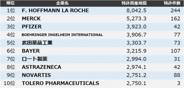 【医薬品】特許資産規模ランキング2020 トップ3はROCHE、MERCK、PFIZER