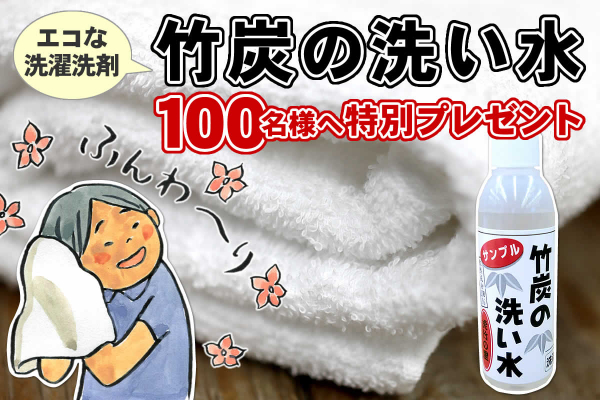 大好評につき再開!先着100名様無料プレゼント 竹炭の洗い水ミニボトル約1回分(25ミリリットル)