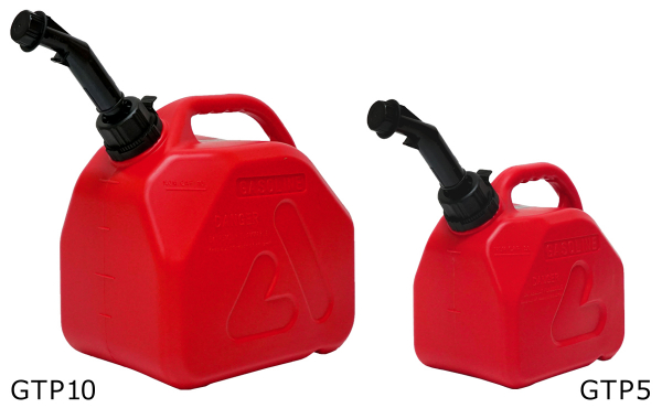 プラウPLOWより、UN規格認定容器/消防法適合品で軽く安全な高密度ポリエチレン製ガソリン携行缶2サイズ 容量10リットル・GTP10と容量5リットル・GTP5が登場しました。