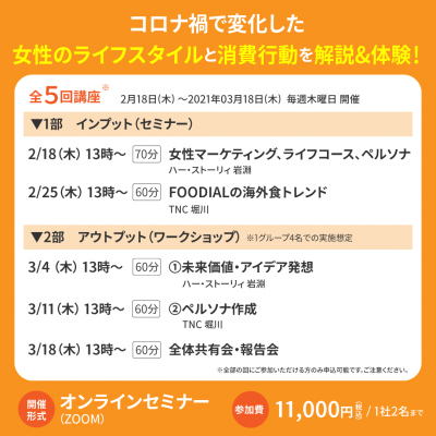 「食」を起点としたライフスタイルの変化や市場のトレンドを体感できる!【全5回講座2/18(木)〜】女性消費者理解・発想ワークショップ開催!