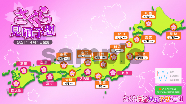 株式会社ライフビジネスウェザ―「さくら開花・見頃予想2021」1月28日より発表
