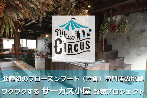 北陸初となる冷食専門店「nikuo CIRCUS(ニクオサーカス)」を運営する、にくお合同会社(金沢市)が、クラウドファンディングに挑戦します。安心安全に配慮した冷食を提供する同社が、コロナ禍の在宅ワークや外出自粛で、家事負担が増しているお母さんのために、癒しの空間を作ることを目指し、改装資金を募ります。