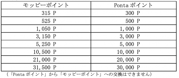 (「Pontaポイント」から「モッピーポイント」への交換はできません)