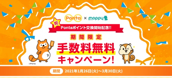 ポイントサイト「モッピー」が「Pontaポイント」とのポイント交換を開始 〜3月30日までの期間限定で、手数料無料キャンペーンも実施〜
