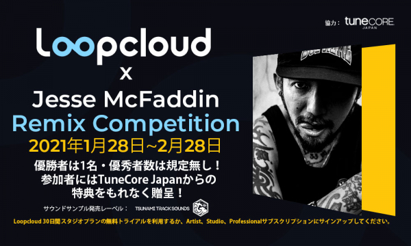 Jesse McFaddin x LoopcloudのREMIX大会にTuneCore Japanが協賛!参加者全員にシングル配信無料クーポンを贈呈!課題曲はStart lineに決定!