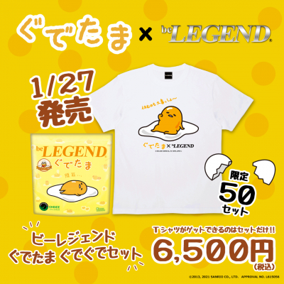 今回のコラボを記念したコラボTシャツとプロテインのセット「ビーレジェンド ぐでたま ぐでぐでセット」も50セット限定で販売が決定しました。