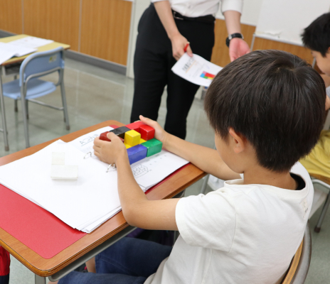 「りんご塾」には、年中・年長対象の「幼児コース」、小学1・2年生対象の「算数オリンピックキッズBEEコース」、小学3・4年生対象の「ジュニア算数オリンピックコース」、小学5・6年生対象の「算数オリンピックコース」があり、指導方法はきめ細かいコーチングを受けられる個別指導型です。子どもたちは自由な雰囲気の中、算数オリンピック対策問題や発想力強化のパズルなど、個々の課題に取り組みます。問題の意図を理解し、多角的に解決法を自ら考えて、自ら答えを導き出させる力を養っていきます。
