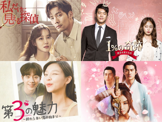近年になり中国ドラマの放送やDVDリリース数が急激に増加している。そんな中、特に注目されているのが中国時代劇だ。「楚喬伝(そきょうでん)〜いばらに咲く花〜」は全エピソードで視聴率1位を獲得し、中国ドラマ史上最高の配信視聴数400憶回を突破するなど数々の偉業を成し遂げた大ヒット時代劇。出演者には“最も歓迎される10大女神”で1位に輝いたチャオ・リーインをはじめ、「三国志〜趙雲伝〜」で主演を務めたケニー・リンら中国を代表する実力派俳優が集結。更に監督はIU×イ・ジュンギ主演で話題を呼んだ「麗〜花萌ゆる8人の皇子たち〜」の原作として知られる「宮廷女官 若曦(じゃくぎ)」を手掛けたウー・ジンユアンが務めた。身分を超えた2人の公子との劇的な愛と戦いを描いたロマンスアクション大作は、ハマること間違いなしの一作。その他、チェ・ダニエル×パク・ウンビンの実力派コンビによるミステリー・ラブロマンス「私だけに見える探偵」や韓流ラブコメの名作「1%の奇跡 〜運命を変える恋〜」など様々なジャンルの人気ドラマが配信されている。