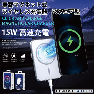 iPhone12対応!車載マグネット式ワイヤレス充電器スクエア型「FLASH」 WK DESIGN