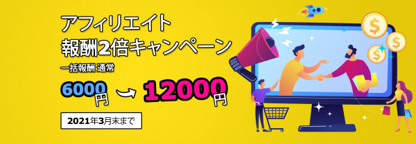 期間限定でアフィリエイト(対象サービス「使えるファイル箱」)の一括報酬額が2倍になるキャンペーンを実施いたします。