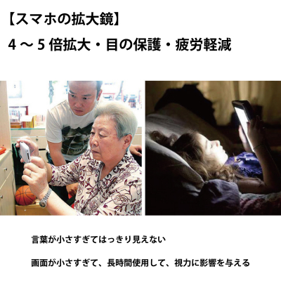 ルーペ不要!スマホ画面を4〜5倍拡大して見やすい「スマホの拡大鏡」miraiON