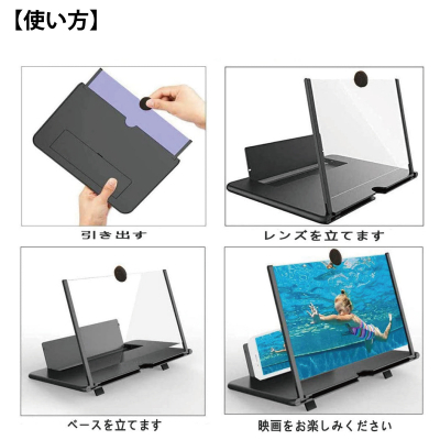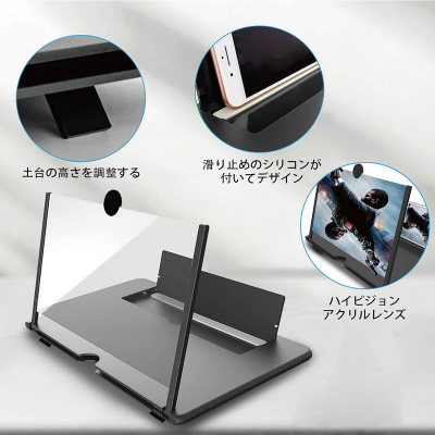 【多機能画面拡大鏡】:画面拡大鏡は高精細ズーム光学技術を使用して、12インチ拡大鏡により、画像がよりくっきりと見えます。電話画面拡大鏡はすべてのiPhoneおよびAndroidスマートフォンに適用し、バッテリーは不要です。