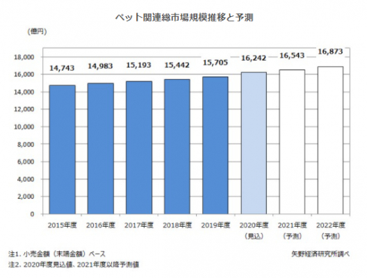 【矢野経済研究所プレスリリース】ペットビジネスに関する調査を実施(2021年)〜2020年度のペット関連総市場規模は前年度比3.4%増の1兆6,242億円と伸長の見込〜