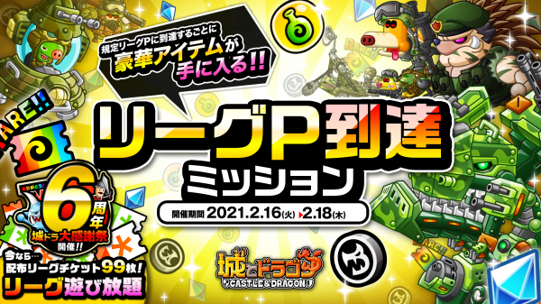 株式会社アソビズム(本社:東京都千代田区、代表取締役:大手智之)は、App Store・Google Playにて好評配信中の『城とドラゴン』で、「リーグ」および「リーグP到達ミッション」を2021年2月16日(火)より開催いたします。