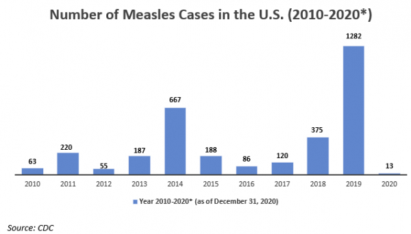 WHOは、2019年の最初の3か月で、昨年の同時期と比較して、麻疹の症例が300%増加したと報告しました。2016年には約700万人が麻疹の影響を受けました。世界の麻疹による死亡者数は84%減少し、2000年の550,100人から2016年には89,780人に減少しました。