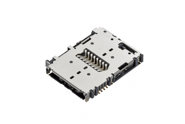 モレックスのmSD/nSIM 3-in-3スタックカードソケットは、ソケットに内蔵されたカード用トレイの上面にmSD(mini SD)カード1枚、および底面にnSIM(nano SIM)カード2枚をセットできるスタック(重ね入れ)タイプのカードソケットです。本製品は、カードの排出にピンイジェクト方式を採用しており、安全な電気的接触および保持力を保証し、カードの取り外しも簡単です。