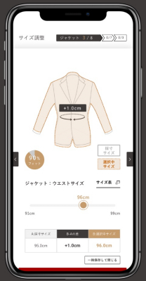 今までは、スーツやジャケットの注文後にサイズを登録する流れでしたが、お客様がオンラインでオーダーする不安に「着たときに合うようにサイズを選べるか」という声も多くありました。今回の新サービスは「まずはお気に入りのサイズを登録」し、登録したサイズをスマートフォンで確認した後に注文を決定できるようにしました。