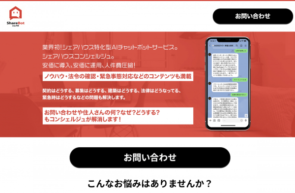 シェアハウス特化型チャットボットによるシェアハウスコンシェルジュがお客様対応を24時間365日実現〜新サービスSharebot(シェアボ)発売開始〜