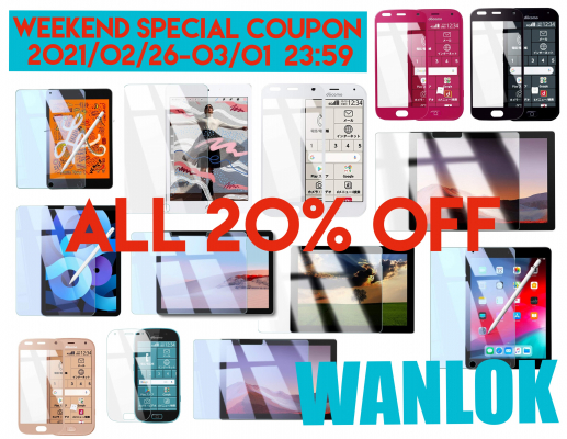 WANLOK 大好評「週末限定クーポン祭り」を本日から4日間限定でアマゾンにて開催。NO1人気の『Surface』や『iPad各種』、一体感抜群の『docomoらくらくスマホ』のフィルムを20%OFF