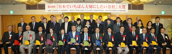 「日本でいちばん大切にしたい会社」大賞は、企業が本当に大切にすべき(1)従業員とその家族、(2)外注先・仕入れ先、(3)顧客、(4)地域社会、(5)株主の5人をはじめ、人を大切にし、人の幸せを実現する行動を継続して実践している会社の中から、その取組が特に優良な企業を表彰し、他の企業の範となることを目的として、平成22年度から実施しています。第1回より、経済産業大臣賞、中小企業庁長官賞、審査委員会特別賞を授与しています。その後、第5回から厚生労働大臣賞を創設、第6回から実行委員会特別賞を創設、第8回から中小企業基盤整備機構理事長賞を創設し、昨年度第10回からは地方創生大臣賞を創設し、表彰してきました。
