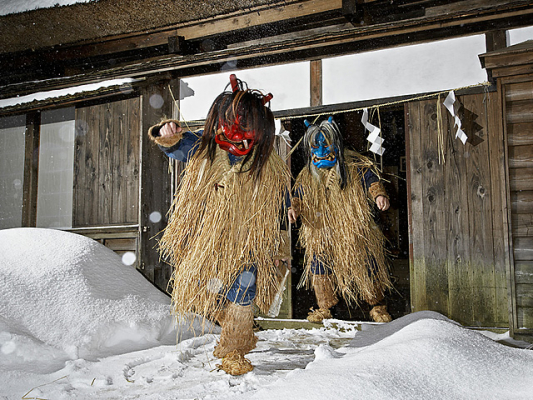毎年大晦日の晩に行われるナマハゲ行事は、男鹿半島のほぼ全域で行われる民俗行事です。ナマハゲは豊作・豊漁・吉事をもたらす来訪神として「怠け者はいねが。泣く子はいねが」と、悪事に訓戒を与え、各家庭を練り歩きます。