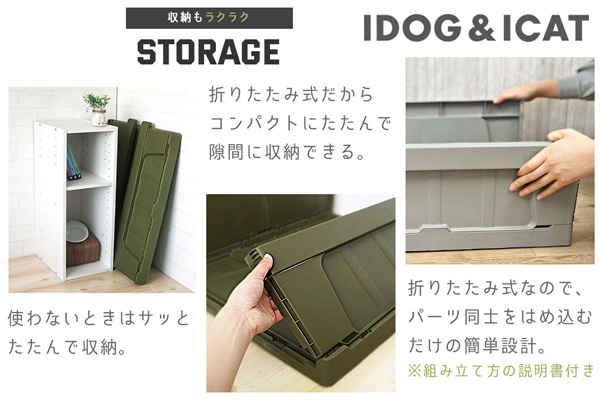 商品は折りたたみ式になっており、壁面を起こして壁同士を固定するだけで簡単に組み立てが完了します。