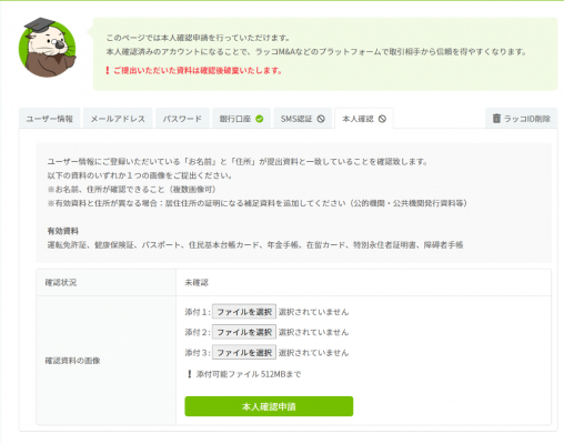 サイト売買プラットフォーム「ラッコM&A」本人確認機能実装のお知らせ(より安心な取引が可能に)