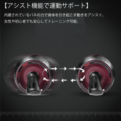 【特長】 筋力の少ない初心者や女性に最適なバネの力で身体を引き起こすアシストをしながらトレーニングできるローラー