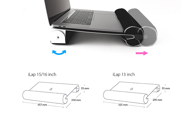 MacBookやノートPCを膝の上や不安定なところで何時間でも安定して使える、Rain Design iLapアルミニウムラップスタンドの正規輸入・販売を開始