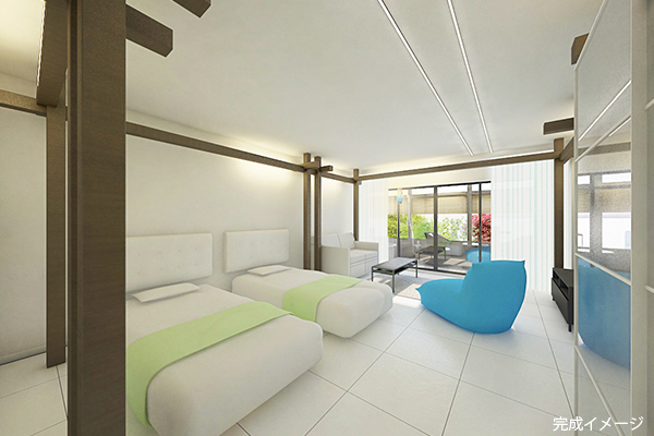 これまでの烟河のイメージとは異なる、白を基調とした洋式の室内空間は洗練されたデザイン。メインコンセプトはプレミアムな快適性を追求した「Heaven Room」。次世代型冷暖システム「F-CON(株式会社中島商会 社製)」および、まるで雲の上にいるかの様な寝心地を楽しめる「MOKUMOピロー」を完備。お部屋での滞在環境にも最大限に配慮を行っており、新たな社会様式にも対応を想定した、次亜塩素酸 空間除菌脱臭機「ジアイーノ(パナソニック株式会社 社製)」を完備。
