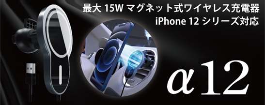 ミスターカード株式会社(本社所在地:埼玉県川口市)は、iPhone12シリーズ対応の車載マグネット式ワイヤレス充電器「アルファ12」を2021年3月19日(金)に発売します。片手でスマートに充電できるアルファ12は、強力な磁気マグネット式でピタッと充電しながら固定可能。15w/10w/7.5w/5wの急速充電。お使いのiPhone12ケースがマグネット未対応でも、付属のマグネットパーツをつければマグネットで固定できます。エアコン吹き出し口に装着し、横どちらにも置ける360°回転、角度も可能。物事の始まりの意味を持つアルファ12を手にすることで、あなたのスマートライフは新しいステージでワイヤレスチャージを体験することができるでしょう。