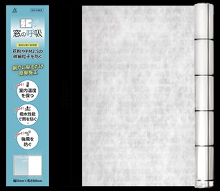 今回一般向けに発売を開始する「窓の呼吸」は、網戸に貼るだけの簡単な施工で花粉やPM2.5など、微細粒子の室内への侵入を防ぐフィルターです。