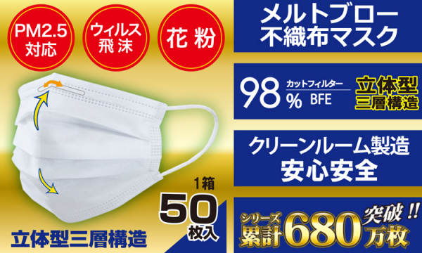 不織布マスク1箱(50枚入)298円〜! 3層構造メルトブロー不織布マスクの週末お買い得クーポンセール3月19日から開催。感染症対策の徹底・感染拡大防止に不織布マスクをお役立てください。