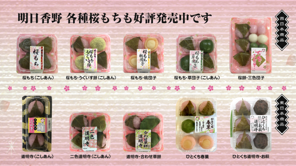 春到来。4月15日より「桜もちで・柏餅」販売いたします。