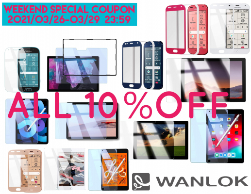 WANLOK 新生活の買替のチャンス アマゾンにて『週末限定クーポン祭 10%オフクーポン大放出』今週も4日間限定で開催『Surface』『iPad各種』『docomoらくらくスマホ』対象フィルム