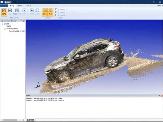 巨大な点群データを MO3D で読み込み、データをダウンサンプリング、面を貼り付けポリゴンデータを最適化し、3DPDF や HTML に書き出します。ポリゴンデータをメッシュ化する際に、点の色を面色に反映できるのが特長です。MO3DとSmart Converter for AECとの違いなどもご説明いたしました。