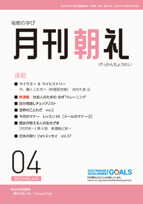 朝礼の専門誌『月刊朝礼』は、働く人のためのコミュニケーションツール。1日1話、スピーチのネタとなる話を365日掲載し、働く人の「心のあり方」を育てます。1カ月分の記事を毎日朝礼で使用すると1日約20円で社員教育ができます。日本国内2000社以上の企業や団体で導入されているほか、最近では海外からの問い合わせも増えています。