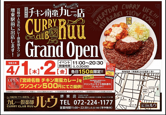 堺東駅直結!GIORNO(ジョルノ)に話題の宮崎県ソウルフード! チキン南蛮カレーのお店【カレー倶楽部ルウ堺東店】が4月3日(土)にオープン!プレオープン記念イベントも同時開催!