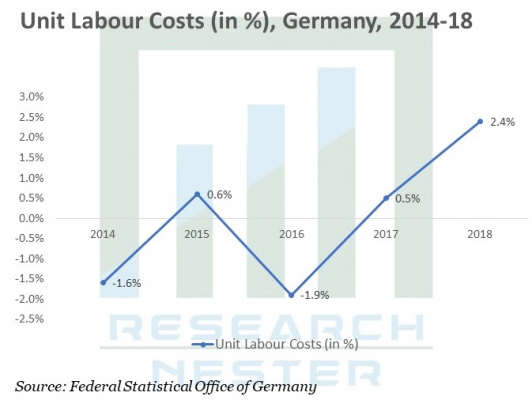 経済協力開発機構(OECD)によると、欧州連合では、労働生産性と利用率が2010年の3.06%から2018年には0.73%に低下しました。一方、ドイツ連邦統計局の統計によると、ドイツの単位労働コストは、2014年の(-)1.60%から2018年には2.40%に増加しました。