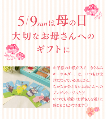 そんな方は是非、お子さまの笑顔のキーホルダーとスイーツで日ごろの感謝の気持ちを伝えてみませんか。