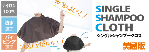 「シングルシャンプークロス」は、防水加工を施した、水や汚れに強いシングルタイプのシャンプー用ケープ。コストパフォーマンスも高く、毎日のサロンワークの効率アップに最適なアイテムです。