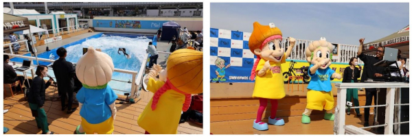 当社が協賛しているサーフィン施設「citywave Tokyo」で3月27日(土)に開催されたサーフィン競技イベント「TOKYO STYLE MASTERS 2021(トーキョースタイルマスターズ 2021)」の会場で、キャラクター名決定の発表を行い、等身大の「リッキー」と「ルイ」の着ぐるみが登場、同イベントを盛り上げました。