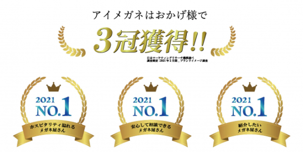 目と耳のトータルケアショップアイメガネ 日本マーケティングリサーチ機構の調査3部門でNo1を獲得!