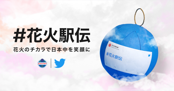 応募は簡単、#花火駅伝 をつけて「笑顔」にまつわるエピソードや願い事をツイートするだけ。