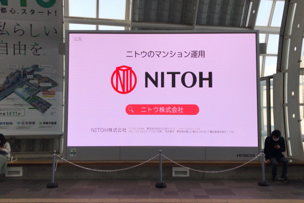 マンション運用事業を運営する N I T O H株式会社(ニトウ)(本社:東京都渋谷区円山町3-6) は、2021 年 4 月 1 日(木)〜2022 年 4 月 15 日(金)まで、さいたま新都心駅前(埼玉県さいたま市大宮区吉敷町4丁目)大型映像装置にて、広告看板を掲出いたします。