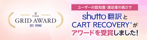 「shutto翻訳」「CART RECOVERY」ユーザーの満足度の高さでアワードを受賞!〜「ITreview Grid Award 2021 Spring」Webサイト翻訳部門・カゴ落ち対策部門