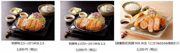 「とんかつ専門店 粉豚」は、「日本SPF豚協会」の認定制度に沿って、ほぼ無菌状態で飼育した「林SPF」というブランド豚を使用した、最低でも厚さは2.5cm(衣をつけると約3cm)と分厚く食べ応えがあるサイズのとんかつが特徴です。また、お届けした時に“できたて”のサクサク感を味わっていただけるよう、剣立ち(揚げたパン粉が剣のように立ち上がっている状態)が良く油切れの良いパン粉をつけ、低温でじっくり揚げることで、より豚肉を柔らかくジューシーに仕上げます。