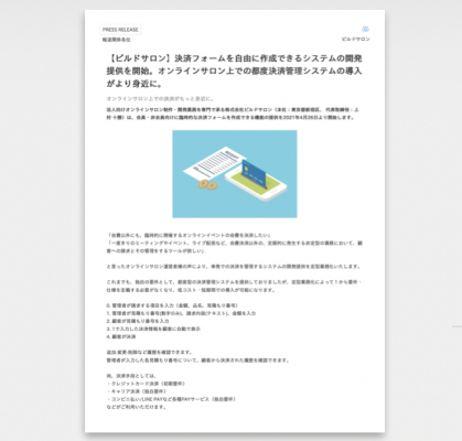 法人向けオンラインサロン制作・開発業務を専門で承る株式会社ビルドサロン(本社:東京都新宿区、 代表取締役:上村 十勝)は、会員・非会員向けに臨時的な決済フォームを作成できる機能の提供を2021年4月26日より開始します。