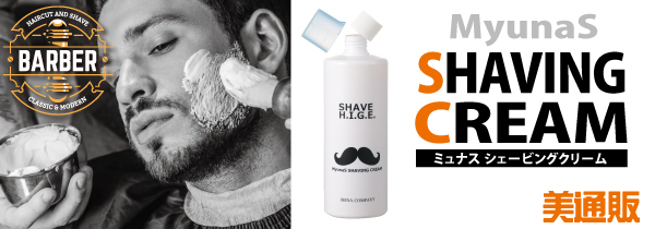 人気のBARBERスタイルの中でも、シェービングはBARBERの醍醐味であり、シェービングクリームは理容師の必需品です。「美通販」では、人気のBARBERアイテム「ミュナス シェービングクリーム」を、業界最安値を目指した、美通販会員特別価格にて販売致します。この機会にぜひお試しいただければと考えております。